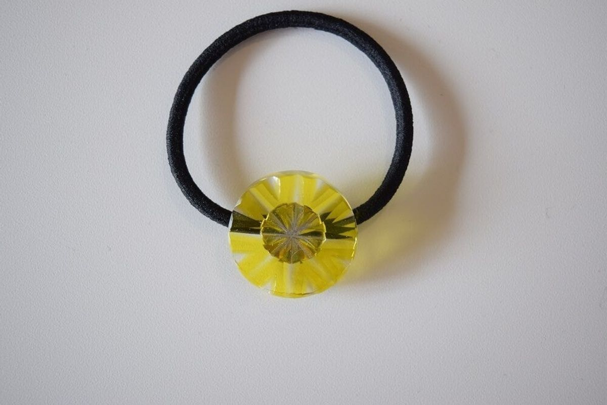アクセサリー、伝統工芸品、愛用品。 ガラス工房の弟子丸によって作られたECO KIRIのヘアゴムです。 ECO KIRIは器として時を刻むことのなかった硝子廃材たちに、もう一度灯をともすブランドです。薩摩切子の工程上で排出されてきた硝子廃材を切子師の技でアクセサリーとして生まれ変わらせました。不揃いな硝子廃材をベースにするからこそ、同じものは一つとして生まれません。 髪だけでなく腕にもおすすめ。 サイズ:直径約2.5cm 素材:クリ