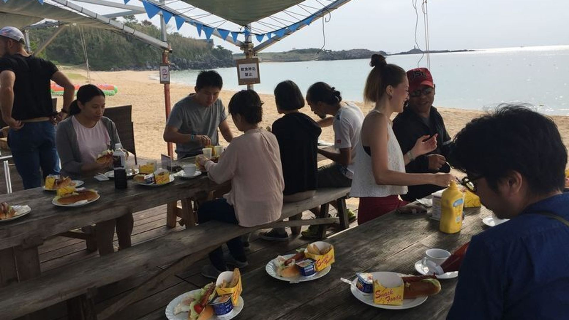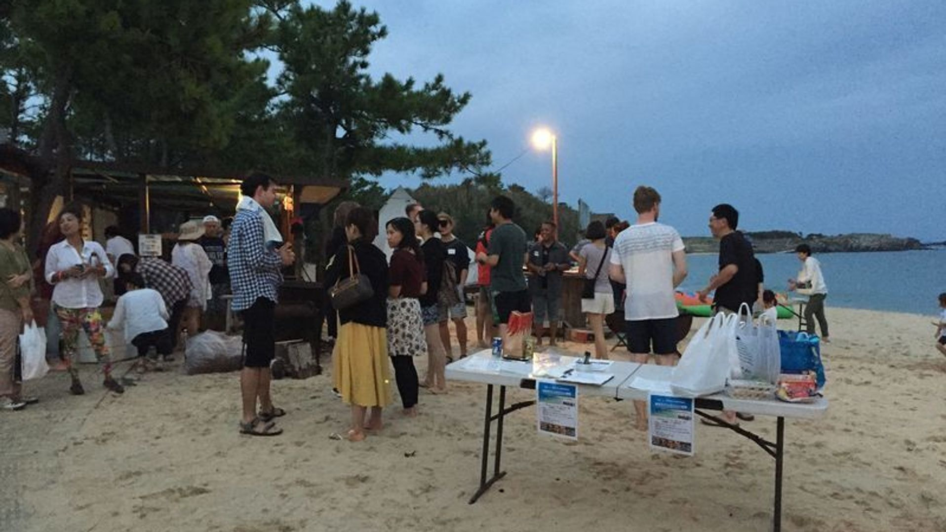 For the dinner, lot of local people came to join for the BBQ. They also brought local foods such as Mozuku(seaweed), himono(dried fish), kamaboko with whole egg inside(fish cake), manjyu(sweet bean), uni(sea urchin) and so much more! Thank you to all of the local people for their friendliness!