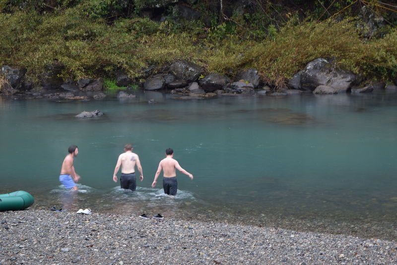 スタッフさんがお勧めしたので、男たちは途中一緒に川に飛び込みました。2月末の河川の水温はまだ低くて、私にとって恐ろしく見えましたが、今まで経験したことがないようにリフレッシュ―ができたそうで、友達は大高評価しました。