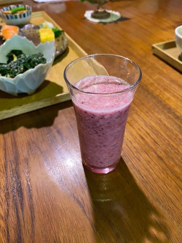 和食でしたが、一番美味しかったのは朝ごはんの前にいただいたオリジナルレシピで作られた野菜スムージでした。