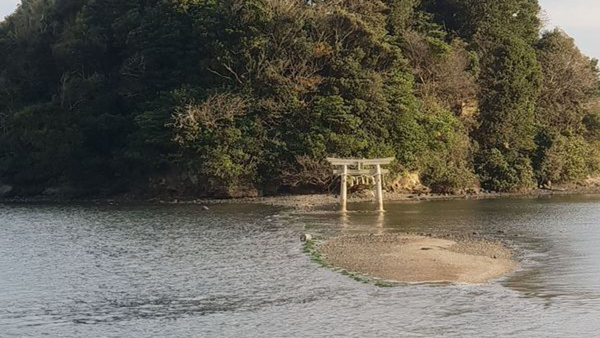 After getting a bit more information on the island and receiving our bicycles, we headed straight to the Takenotsuji observation spot, which is the highest point in Iki, at a height of 231 meters above sea level. The view from there was really stunning and gave a good impression about Iki itself, as we could see most cities and larger points of interest from there. So we took our lunch there and started to head for our next stop, Tsutsukihama Beach. Iki really has a lot of beautiful beaches and the water and flora are really different from the mainland, so it almost seemed like a tropical island. Tsutsukihama beach was no exceptions and was really beautiful, but as it would have been quite cold to go for a swim, we decided to postpone that to the next Iki-trip. We took the road along the coast and headed towards Kojima shrine, a shrine which is located on a small island which gets accessible via foot only when the tide is low and a small path reveals itself. On our way there, we came across a few other shrines and landscapes, so we missed the chance to go on the island by just a bit. But we could still see it from the shore. It is a very beautiful shrine and the small island, together with the tidal factor give off a mysterious impression.