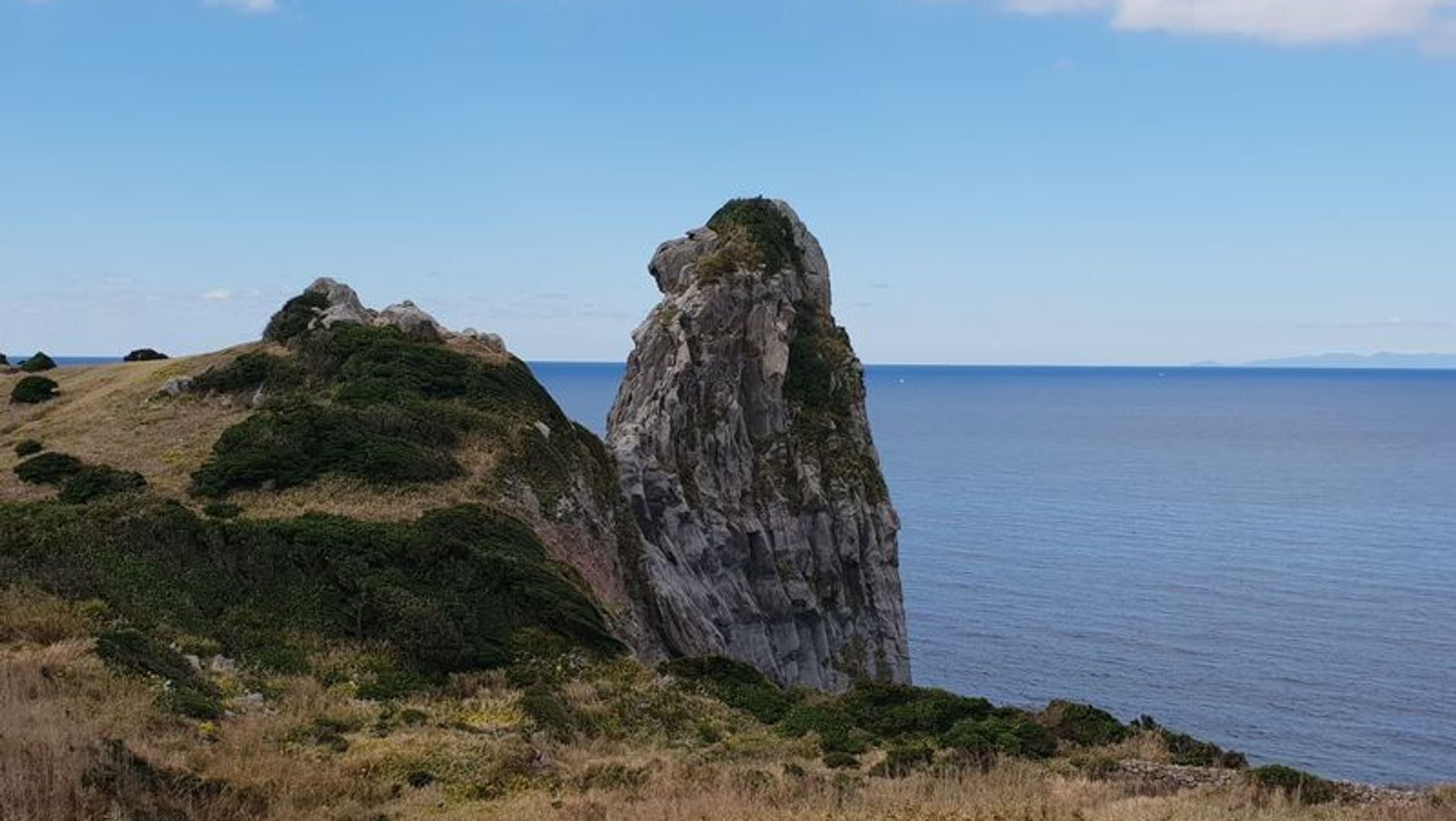 Saru Iwa, the monkey rock. The monkey-esque shape can be clearly seen.