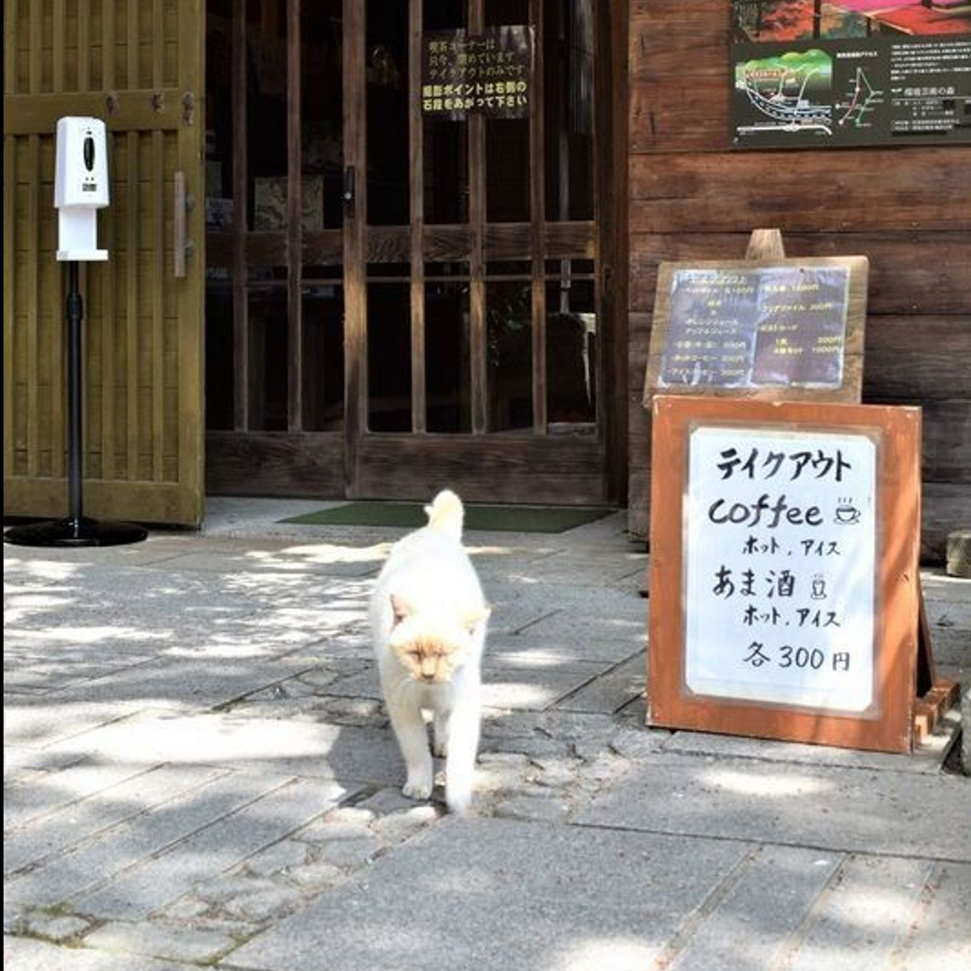 風遊山荘の1階にあるカフェで美味しい甘酒やコーヒーを飲みながら、かわいい猫ちゃんたちが一緒に休憩しに寄ってくるかもしれません🐈