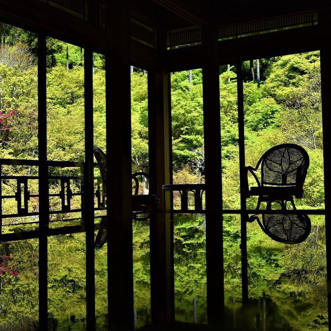 さらに、公園内にある風遊山荘の2階には、インスタ映えスポットがあります!📸をローテブルに置けば、そとの景色が水面に反射されているように見えて、すてきな1枚が撮れます!