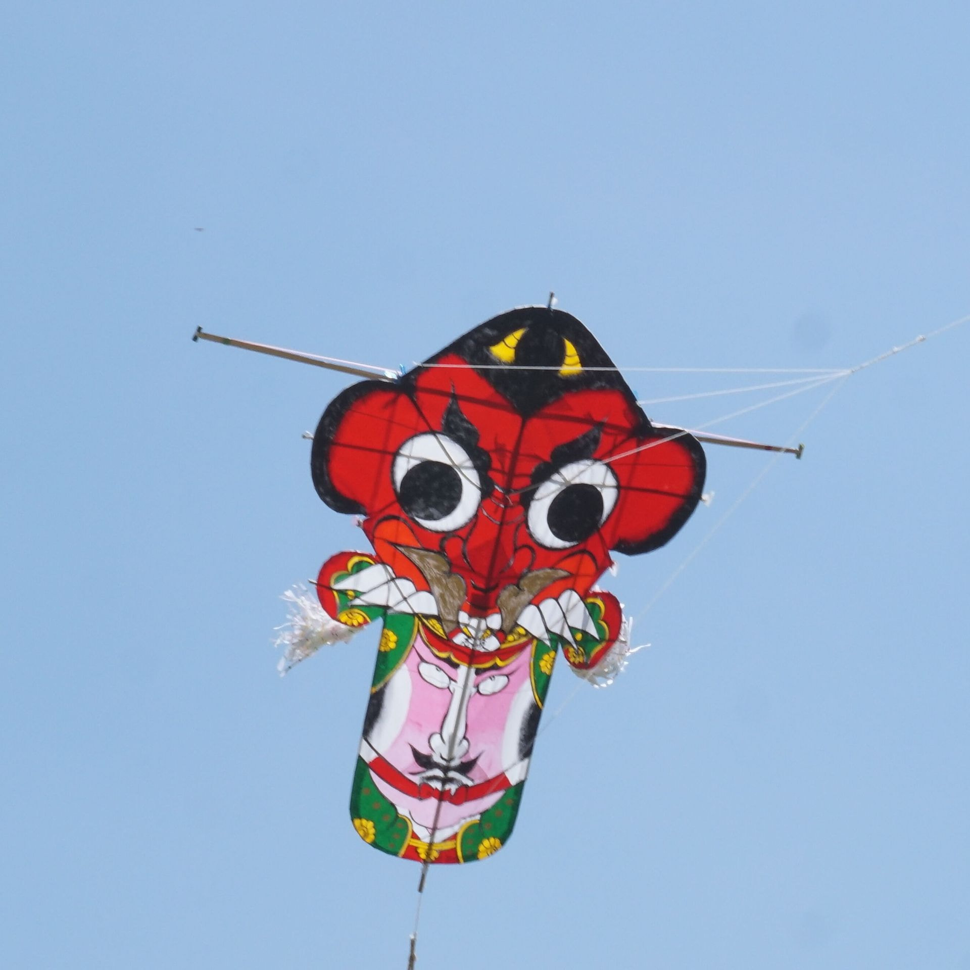 壱岐島、最東端の場所・左京鼻は草原と柱状節理の観音岩と眼下に広がる日本海のコントラストが最高のロケーションです。その中での壱岐の伝統工芸品・鬼凧を飛ばします。