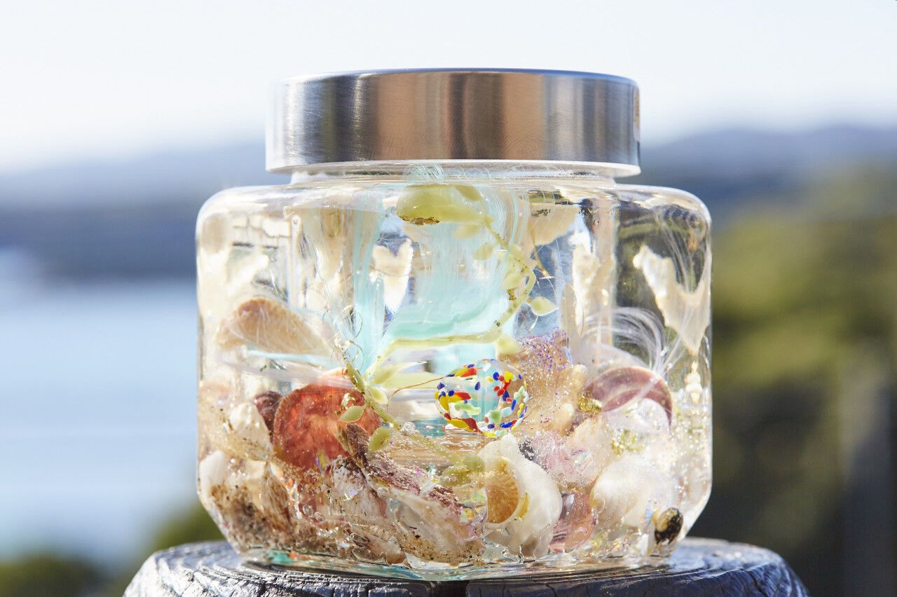 壱岐の砂浜を歩くとさまざまな貝やサンゴを見つけることが出来ます。その貝やサンゴ、砂を生かして素敵な動く海を作ってみませんか?小さなボトルの中に珊瑚を中心とした色々なパーツを使い、自分だけの海を作ることが出来ます。旅の思い出にみなさんもひとついかがですか。お土産にもいいですよ。