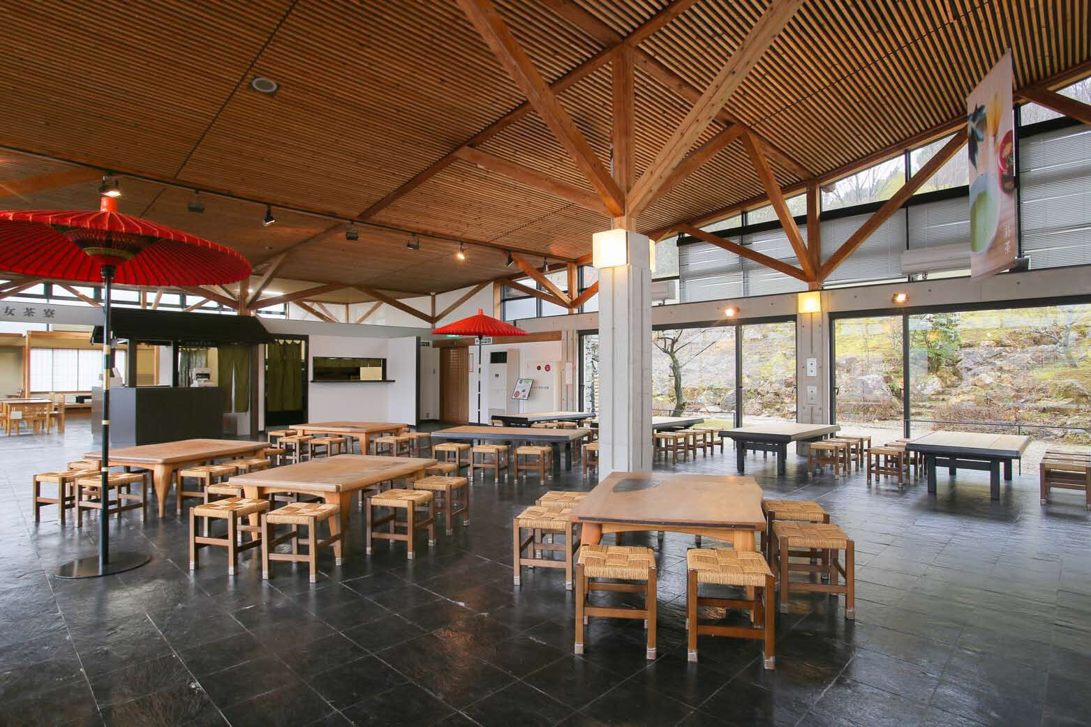福岡県八女市星野村にある茶の文化館です。館内では八女伝統本玉露を飲める他、お茶を使った食事や甘味、抹茶やほうじ茶を作る体験もできます。